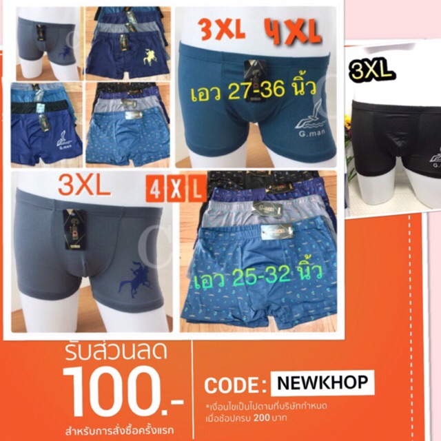 อ่านรายละเอียดก่อนกดสั่งนะจ้า สั่งเยอะเลือกส่ง KERRY เลยจ้า ส่งKerryขั้นต่ำ4 ตัวค่ะ กางเกงบ๊อกเซอร์ชาย ไซด์ 3 XL. และ 4XL. ผ้านุ่มยืดได้ดี ผ้าคอตตอน ขอบยางยืดดี (ขอบหุ้ม) สีโทนเข้มและทึบๆ ไซส์เล็ก 3XL ขนาดสะเอวก่อนยืด25นิ้ว รอบเอวที่ใส่ได้25-32นิ้ว สำหรับเด็กวัยรุ่นและผู้ใหญ่ที่มีรูปร่างผอม ไซส์กลาง 4XLขนาดสะเอวก่อนยืด27นิ้ว รอบเอวที่ใส่ได้27-36นิ้ว รูปร่างดี สมาท สินค้ามาใหม่ ไซด์ ใหญ่ 4XL เอวก่อนยืด 31 นิ้ว รอบเอวที่ใส่ได้ 33-44 นิ้ว. ขนาดใหญ่ ฟรีไซด์. ขนาดเอวก่อนยืด 31 นิ้ว รอบเอวที่ใส่ได้ 31-46 นิ้ว. รูปร่างใหญ่ หรือ สำหรับ หนุ่มๆ ชอบใส่หลวมๆ สบายๆ ดูรายละเอียดขนาดสินค้าให้ชัดเจนก่อนกดสั่งสินค้านะคะ ต้องการใส่แบบสบายๆหรือต้องการใส่แบบพอดีๆ ขนาดตามที่แจ้งไว้นะคะ ทางร้านจะเน้นโทนสีทึบๆในการจำหน่าย แบบและลายบางอย่างอาจจะหมดชั่วคราวและอาจจะมีแบบใหม่เข้ามาเพิ่ม แต่ลายและสีจะใกล้เคียงตามภาพ สามารถเช็คก่อนได้ค่ะ. วิธีการสั่งสินค้า ส่งลงทะเบียน1ออเดอร์ไม่เกิน14ตัวสั่งมากกว่านี้เพิ่มค่าส่ง20บาท ต้องการคละสินค้าในร้านติดต่อแม่ค้าก่อนกดสั่งสินค้านะคะ เนื่องจาก สินค้าบางรายการ อยู่ต่างที่กัน ขออภัยในความไม่สะดวกค่ะ วิธีการส่ง จัดส่งทางไปรษณีย์และ kerry ในวันทำการ สอบถามเพิ่มเติม โทร 081-963-6978 ถุงเท้าราคาถูกถุงเท้านักเรียนถุงเท้าโรงงานถุงเท้า เสื้อผ้าผู้ชายบ๊อกเซอร์ผู้ชาย บอกเซอร์ผู้ชาย ไซด์ 3XL คละสี