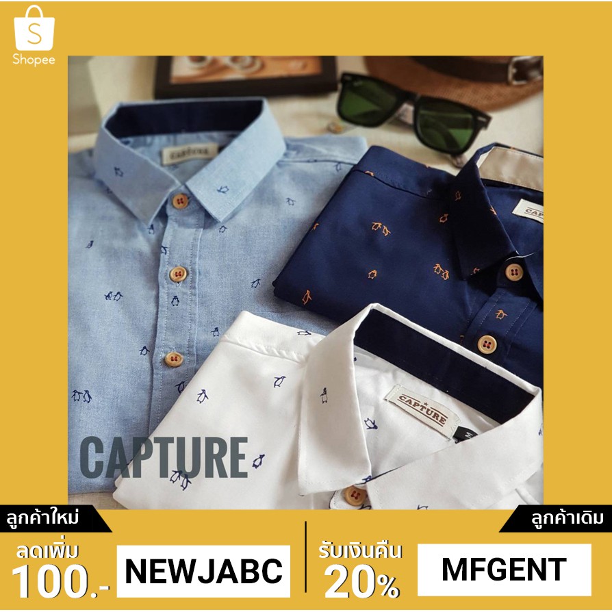 - ชื่อสินค้า เสื้อเชิ้ตแขนสั้น ลายแพนกวิ้น มีถึง 4XLแจกโค้ด NEWJABC ลด อีก100