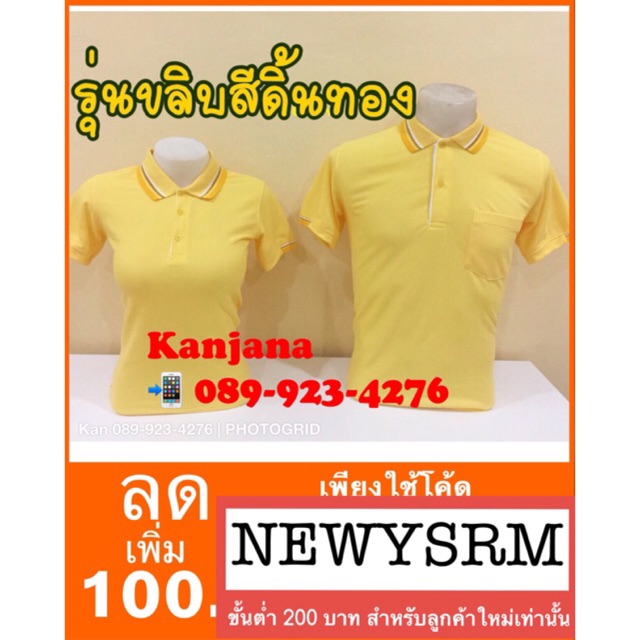 ✓ขายด่วนตอนนี้กำลังลดราคา เสื้อโปโลชาย สีเหลือง ขลิบดิ้นทอง เกรด A