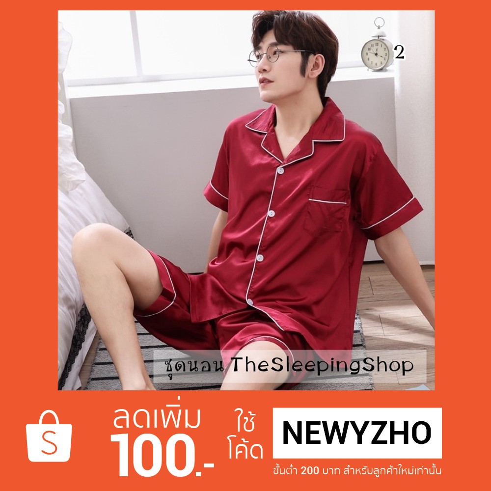 - ชื่อสินค้า ชุดนอนผู้ชาย ซาตินแขนสั้นขาสั้น