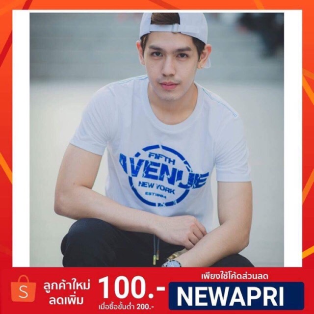 - ชื่อสินค้า เสื้อยืด ผ้า นุ่มใส่สบาย รุ่น FifthAvnue สกรีนกำมะหยี (สีขาว) แจกโค้ดส่วนลด NEWAPRI