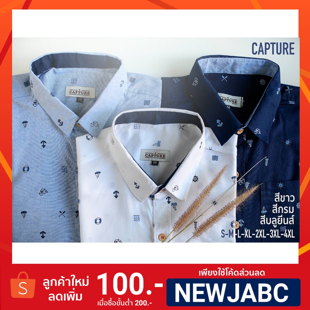 สินค้าอาจมีการเปลี่ยนแปลงราคาและโปรโมชั่น โปรด เช็คราคาล่าสุด เสื้อเชิ้ตแขนสั้น ลายกะลาสีเรือ มีถึงไซส์ 4XLแจกโค้ด NEWJABC ลด อีก100 >ที่นี่