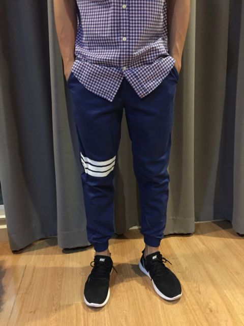 บริการจัดส่งทั่วประเทศ สั่งซื้อผ่านเน็ต รอรับ กางเกงJogger ขาจั๊ม แต่งแถบ 3เส้น ที่บ้านได้เลย