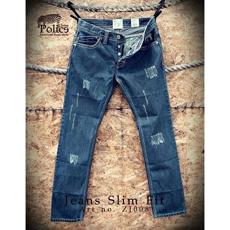 - ราคา Police Zebra กางเกงยีนส์ ทรงกระบอกเล็ก ผ้า denim jeans อย่างดี (ZJ008)