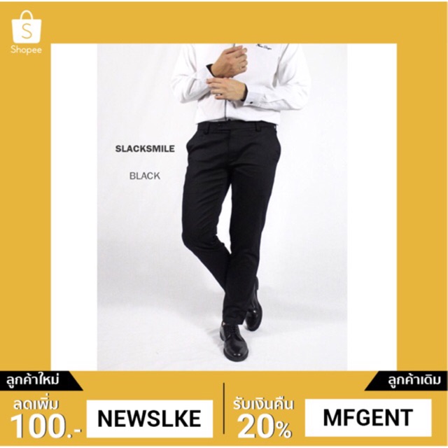 ★★★★★ SMILE กางเกงสแลคชายขายาว ทรงเดฟ ผ้ายืด สีดำ ✓ส่งฟรี✓เก็บเงินปลายทาง✓ของแท้✓ประกันเต็ม✓