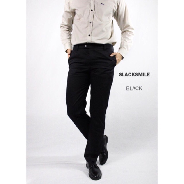 กำลังหา SMILE กางเกงสแลคชายขายาว ทรงกระบอก ผ้ากำมะดิน สีดำ